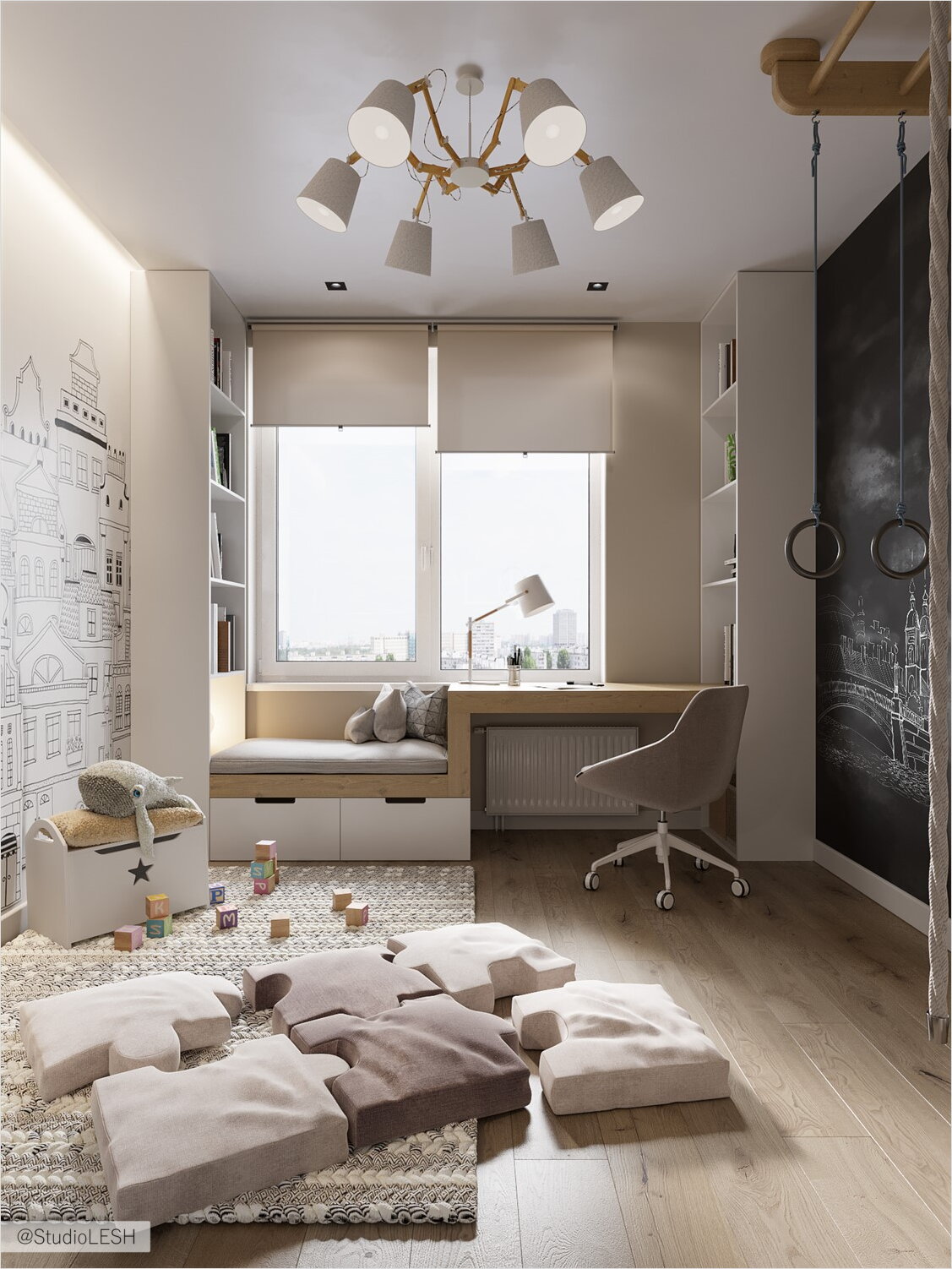 Мягкий, функциональный дизайн детской комнаты